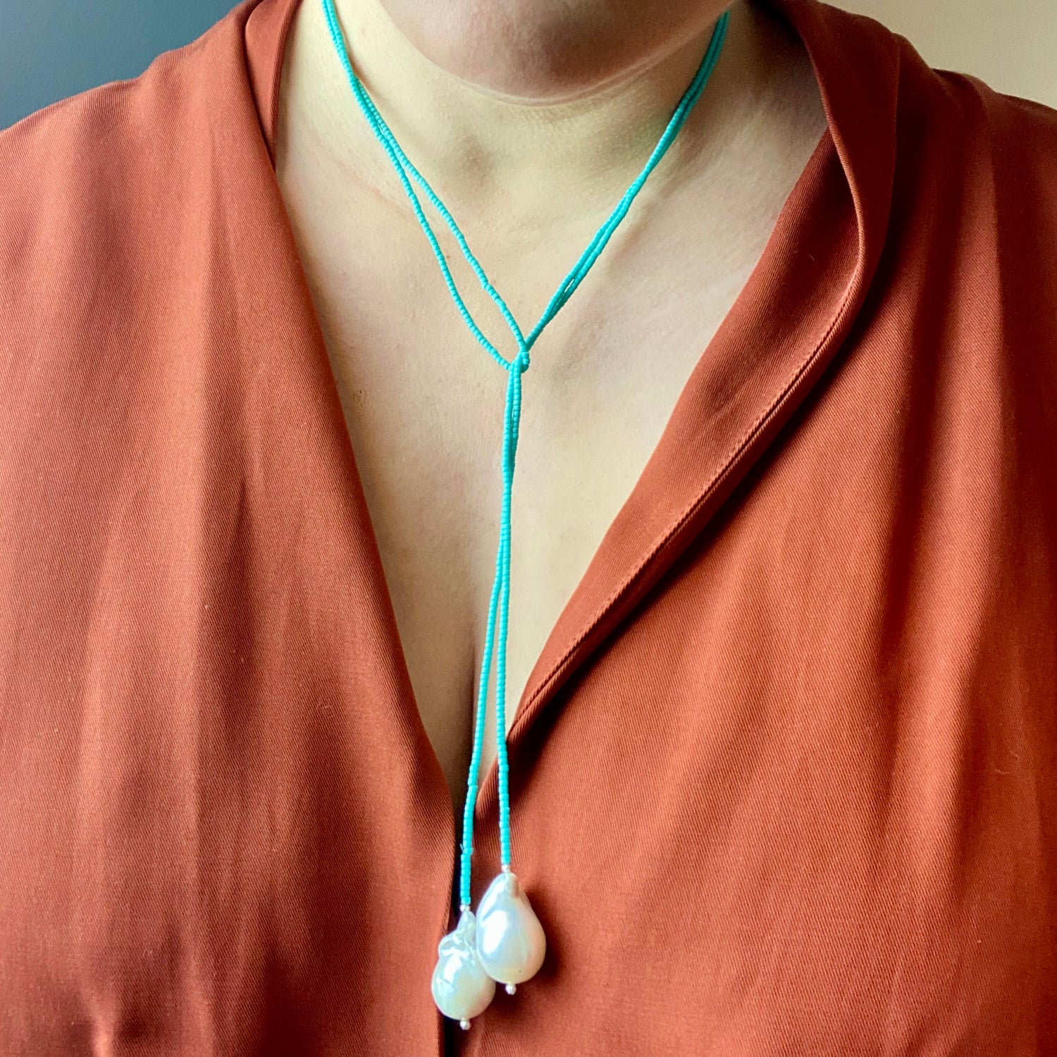 Shimmering baroque sweetwater pearls combined with afghanish ceramic beads to be creatively styled according to your mood.