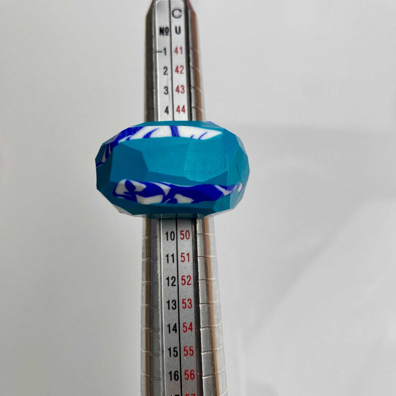 Made of lightweight clay with a glossy finish. Some of the handcarved rings are decorated with shiny gems.
