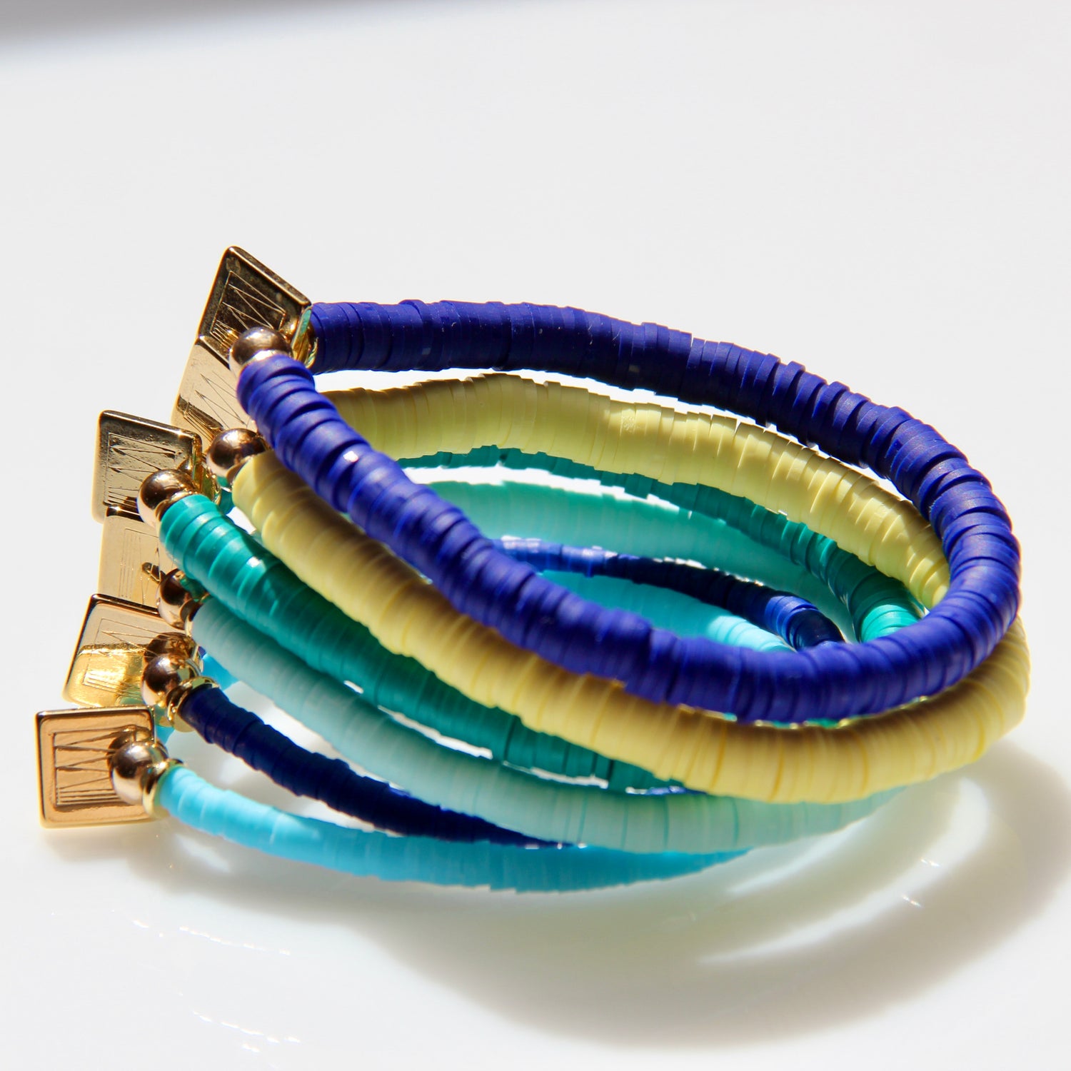 Die ODE TO JOY Kollektion bringt mit ihrem farbenfrohen Spektrum einen strahlenden Akzent zu jedem Outfit. Die Katsukiperlen sind auf einem transparenten, elastischen Gummiband aufgezogen und werden mit hochwertigen 14K-vergoldeten Messingelementen ergänzt.